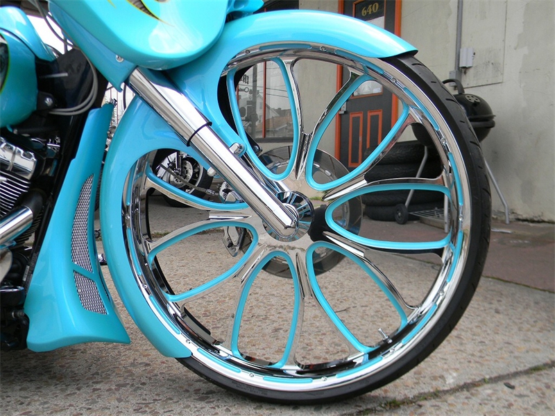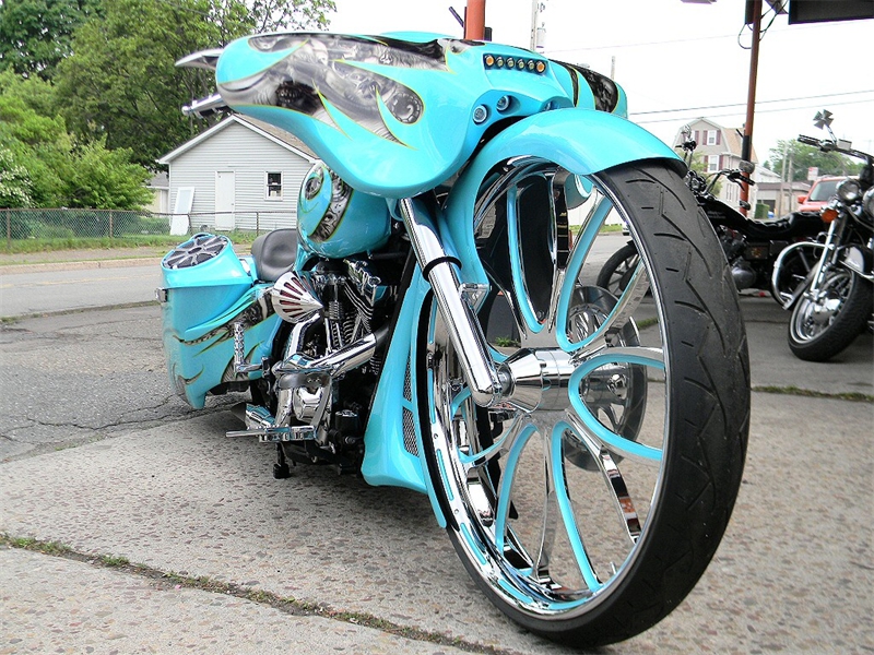 Some of the Bagger work we do includes: Ground-up fabrication, modifications including stretching tanks, bags and fenders, complete custom paint jobs, matching paint on fairings & bags, custom chrome, sound systems, suspension kits, anything you can think of, with a massive selection of parts available from all the top names and innovators in the industry.