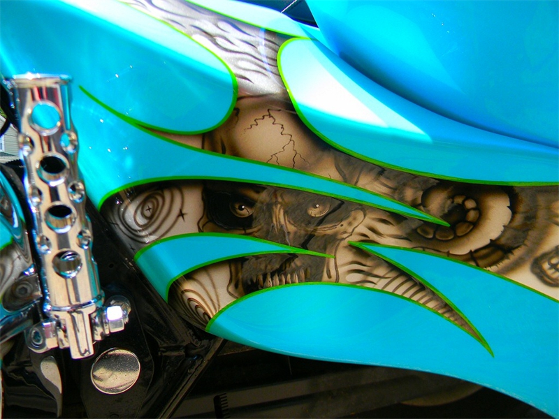 Paint by Iron Hawg's own Jeff Zapotocky in house. Air brush and pinstripe by Debbie Mulnar.