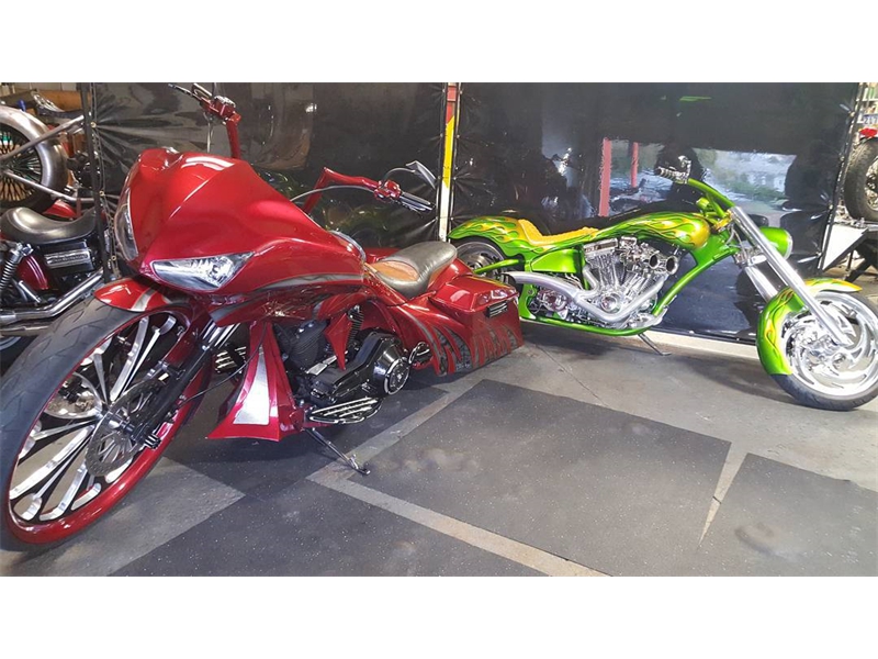Some of the Bagger work we do includes: Ground-up fabrication, modifications including stretching tanks, bags and fenders, complete custom paint jobs, matching paint on fairings & bags, custom chrome, sound systems, suspension kits, anything you can think of, with a massive selection of parts available from all the top names and innovators in the industry.